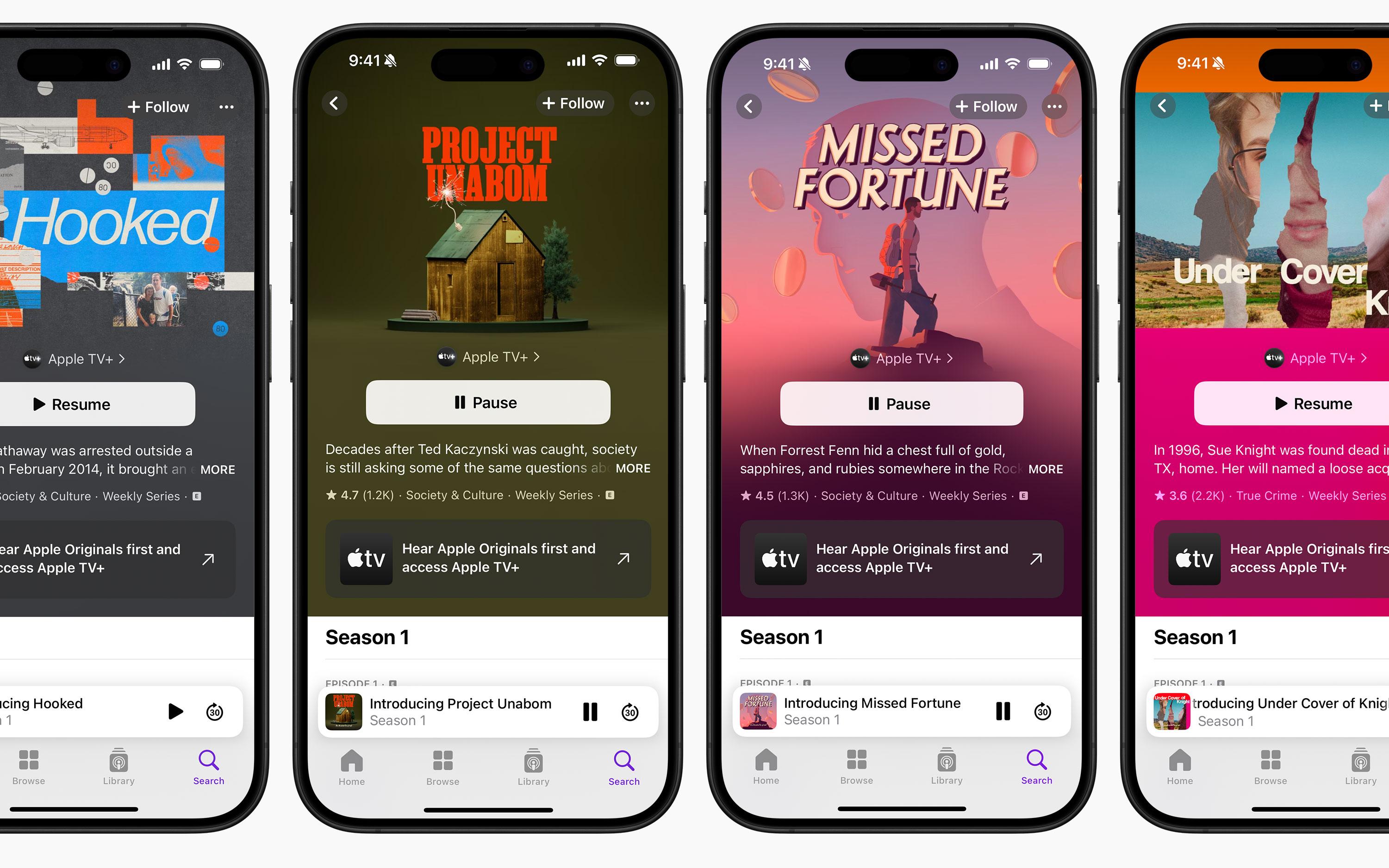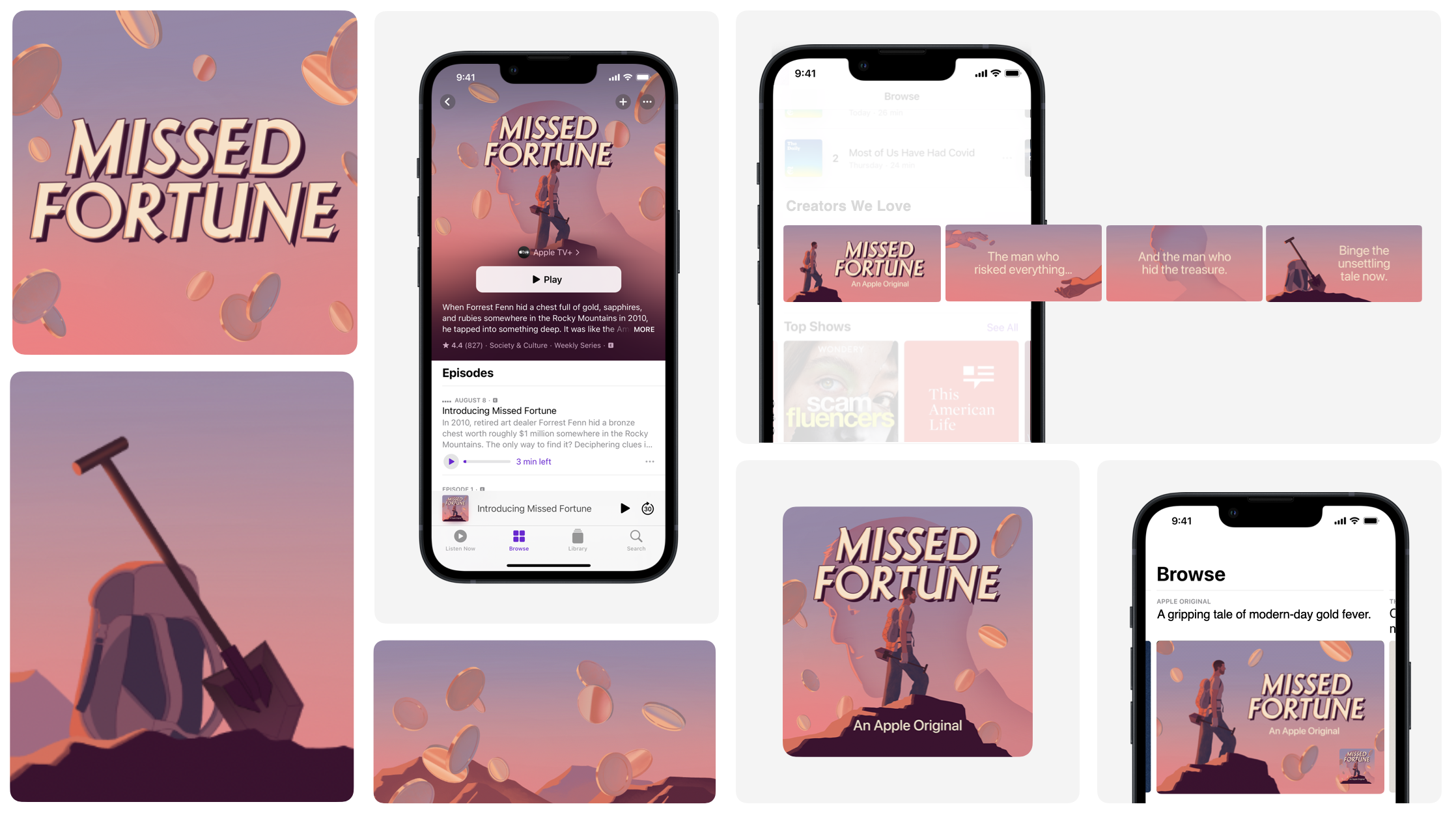 In 2021, the tv+ team ventured into the world of original content, partnering with various production houses and writers to create unique podcast series. We partnered with the tv+ team, external artists, and animators to create a visual system and corresponding trailer for eownablew. Our goal was to combine a visual language that honored the originality of each narrative with Apple’s trademark aesthetic: minimal yet arresting.